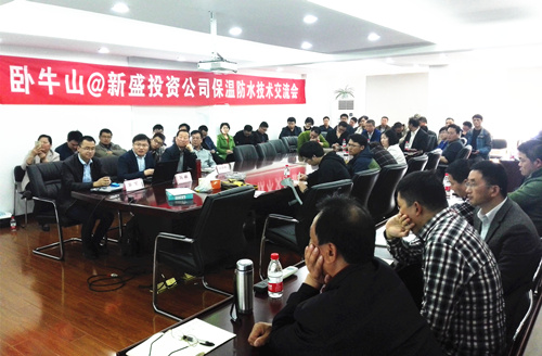 2016年4月9日上午,江苏卧牛山公司走进徐州新盛投资公司,举行了一场修建外墙保温、防水手艺交流会,新盛投资公司相关部分、各分子公司及各项目部建设总包方、监理单位共计60余人出席了本次交流会,配合探讨修建外墙保温、防水施工的各项要求。